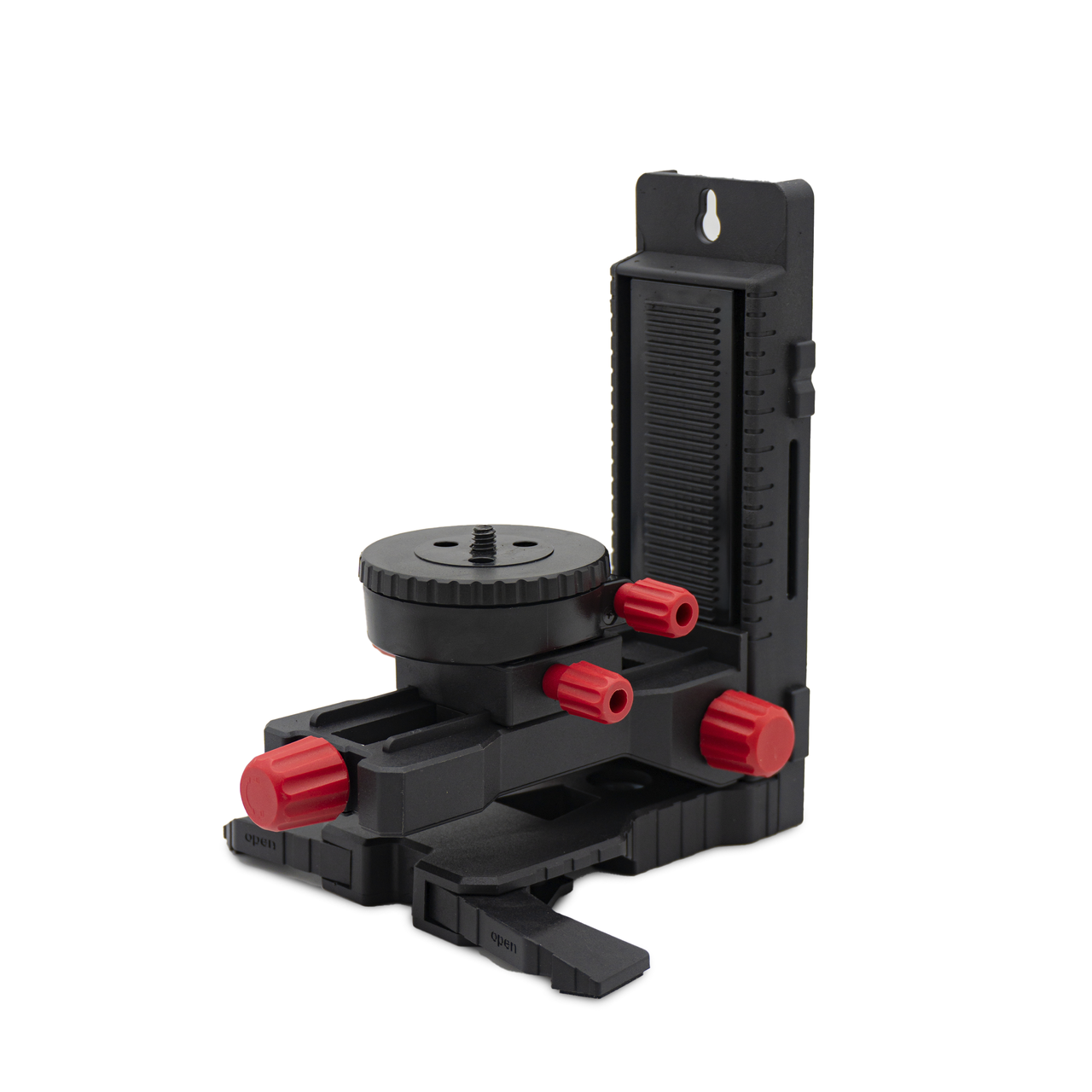 Кріплення фіксується на штатив і дозволяє переміщати лазерний рівень на необхідну висоту. Так само держатель може бути встановлений на підлогу або стіл.